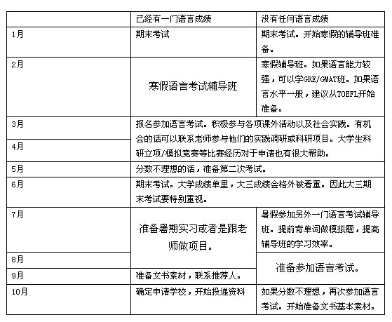 ????根據(jù)我們以往年的經(jīng)驗(yàn),申請(qǐng)計(jì)劃啟動(dòng)越早,拿到的結(jié)果也就越理想。這兩年的趨勢(shì)就是申請(qǐng)者準(zhǔn)備的越來(lái)越早,很多同學(xué)從大二的時(shí)候就開(kāi)始著手語(yǔ)言考試了。2014年的申請(qǐng),在今年九月份就要開(kāi)始了,基本上十月份美國(guó)所有大學(xué)的申請(qǐng)就全部開(kāi)放了。從現(xiàn)在開(kāi)始計(jì)算,還有十個(gè)月左右的時(shí)間留給2014年秋季入學(xué)的同學(xué)了。如何把握好這十個(gè)月的時(shí)間呢?
