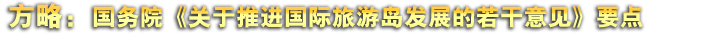 《海南國際旅游島建設發(fā)展規(guī)劃綱要》按照,《國務院關于推進海南國際旅游島建設發(fā)展的若干意見》明確的指導思想、戰(zhàn)略定位、發(fā)展目標和重點任務,在全面分析海南國際旅游島建設發(fā)展的內外部條件的基礎上,從空間布局、基礎建設、產業(yè)發(fā)展、保障措施、近期行動計劃等方面提出了具體工作安排。